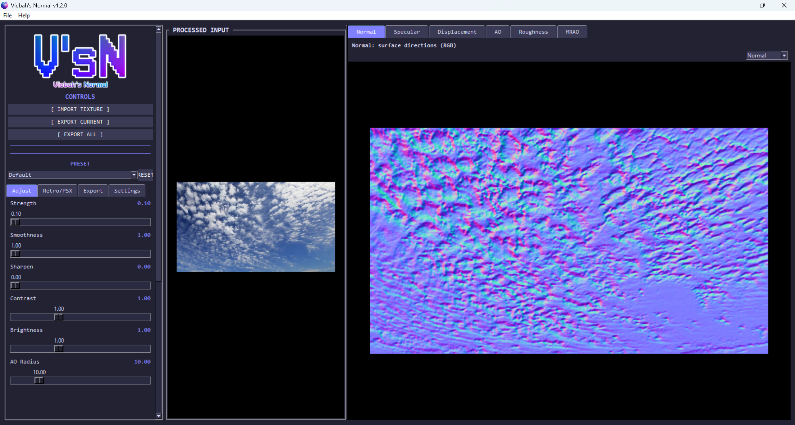 Convert base color maps to normals, with extra Retro filters and Textures tools.